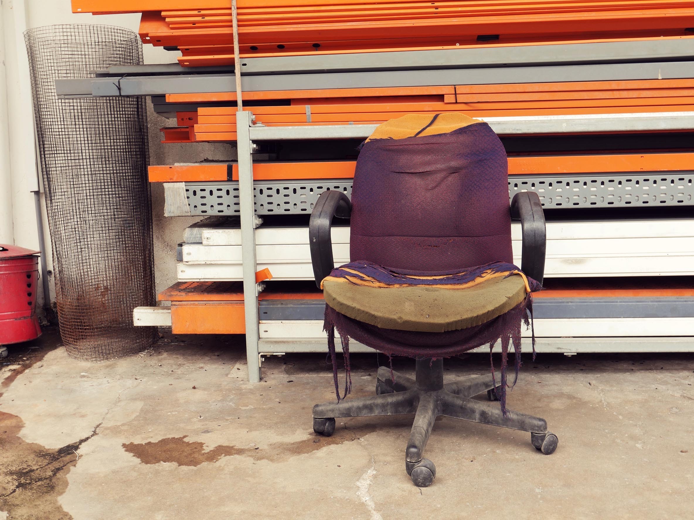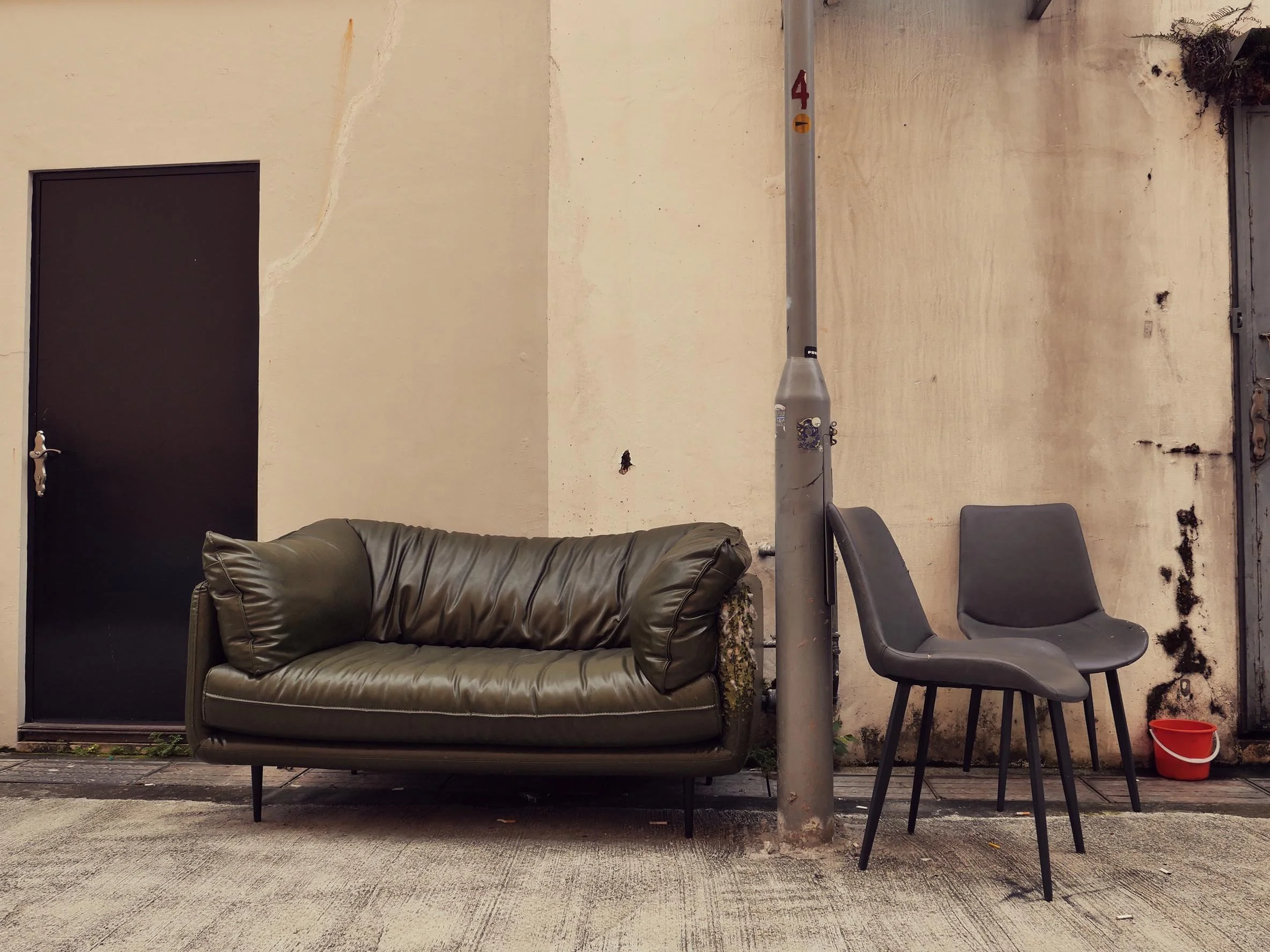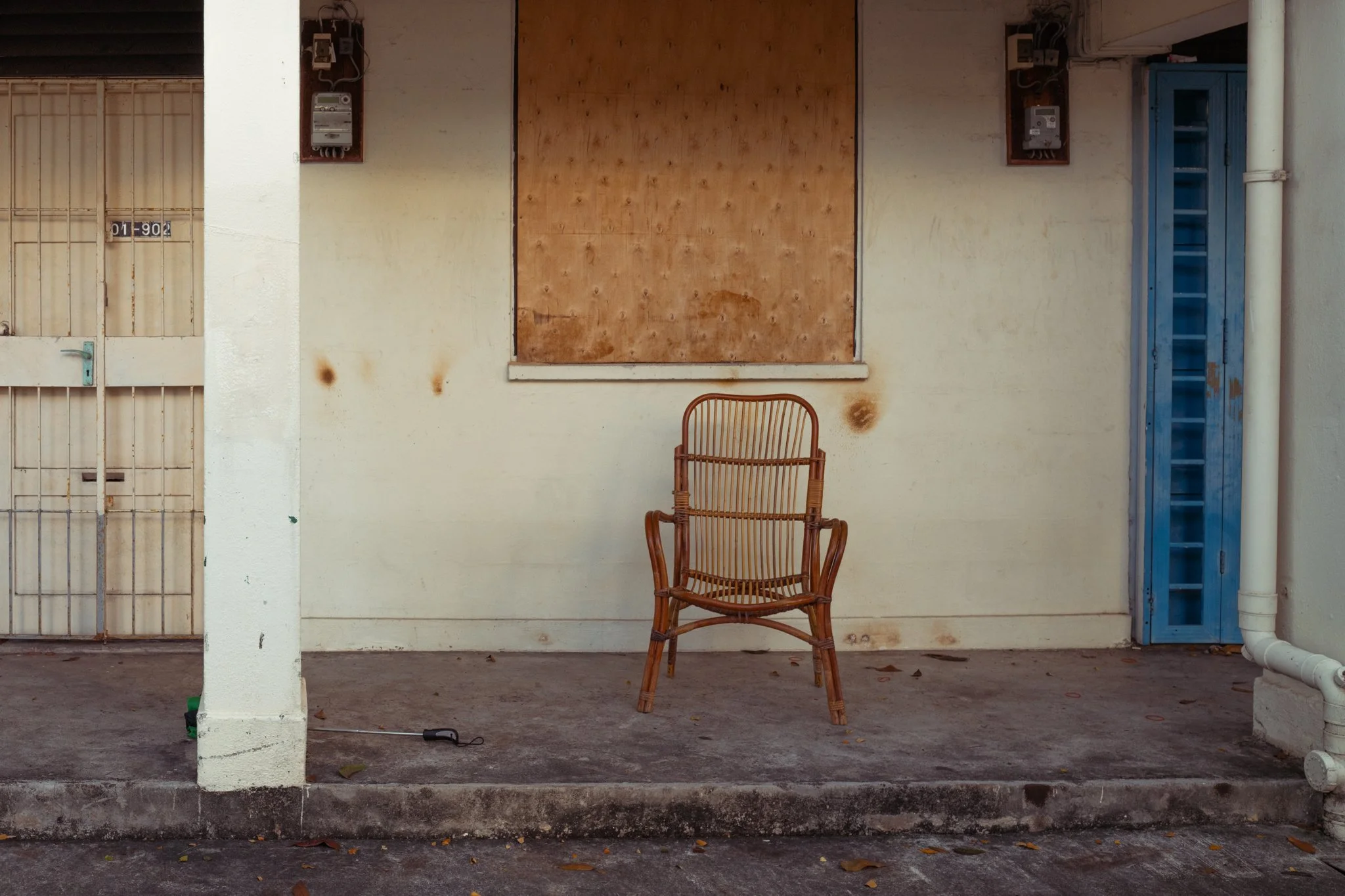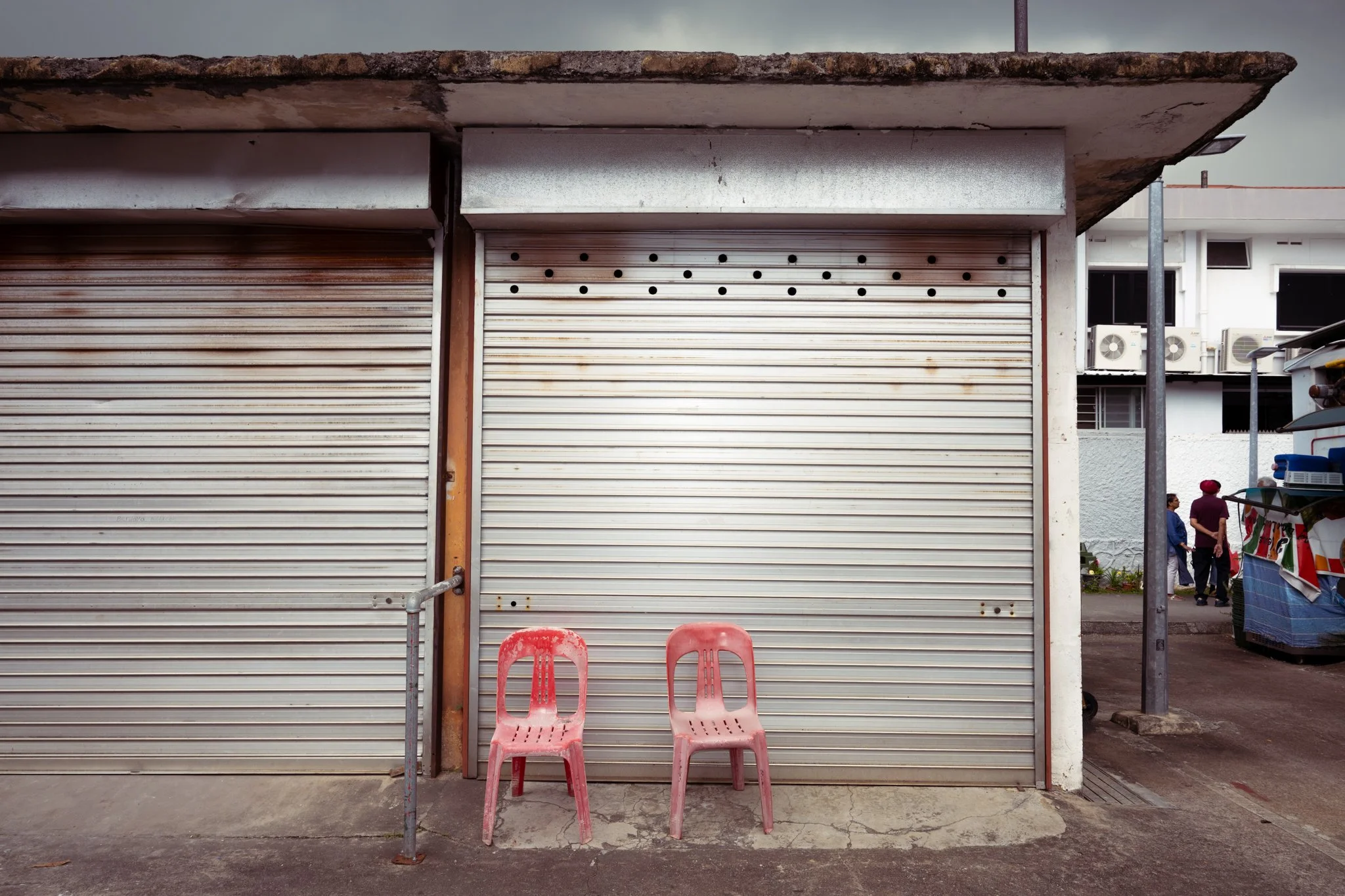 Shifting Seats is a photographic observation of the humble chairs scattered through the backstreets of Singapore. Used by workers during brief pauses in the day such as morning kopi breaks, mid-shift rest or end-of-day conversations, these chairs carry the marks of repeated use: worn plastic, repaired legs, dents, grime, paint rubbed thin.